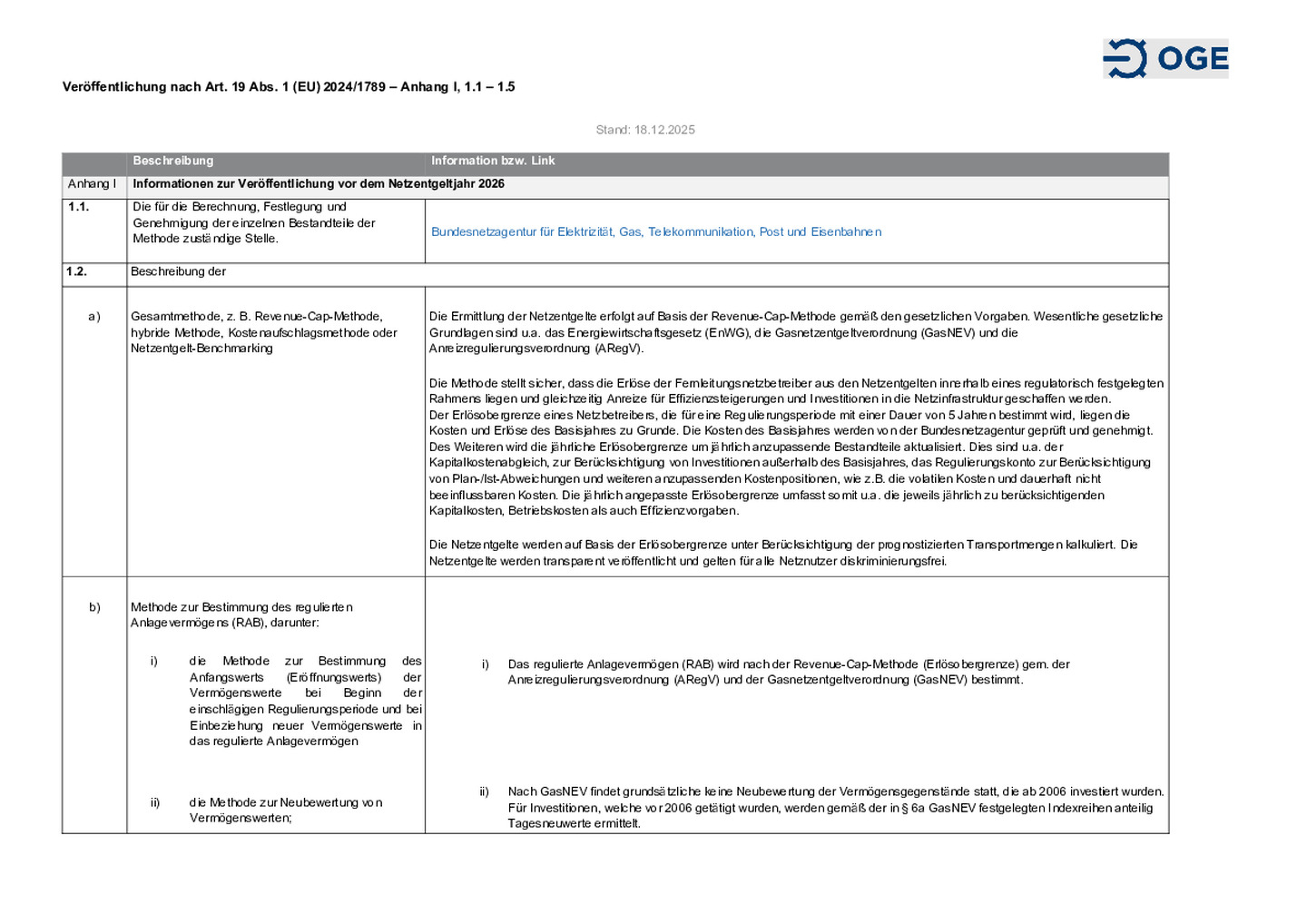 Veröffentlichung der Open Grid Europe GmbH zu Informationen gemäß der Verordnung (EU) 2024/1789.